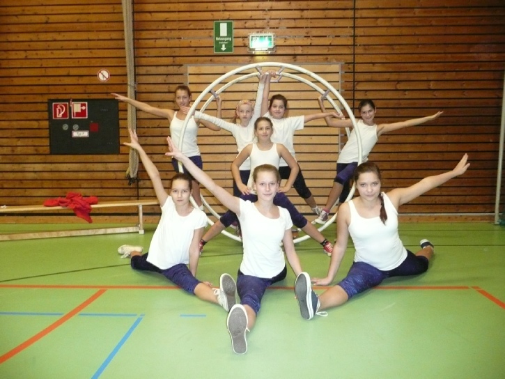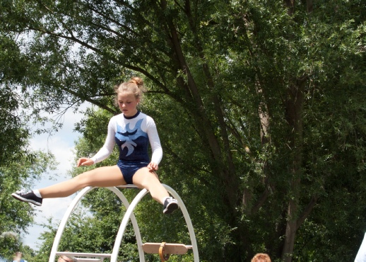 Es war für die Turnerinnen garnicht so einfach auf dem ungewohnten Gelände zurecht zu kommen. Trotzdem ist uns die Vorführung mehrmals gut gelungen, und kam beim Publikum sehr gut an. Zum Glück spielte auch das wechselhafte Wetter an diesem Tag jedesmal mit.