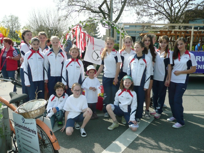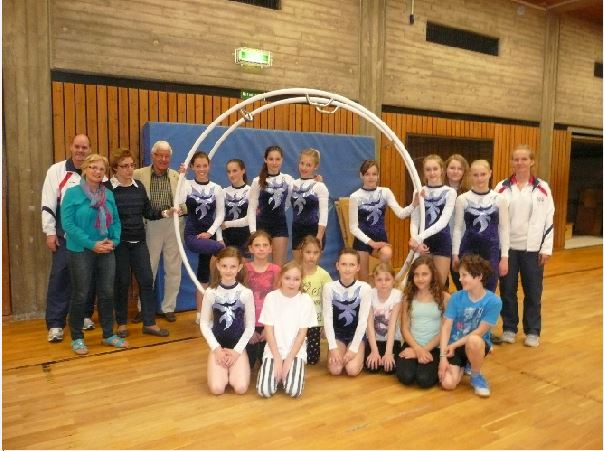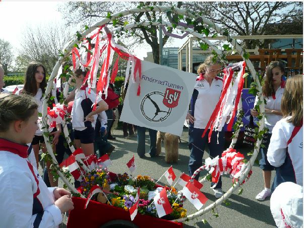 Die Anfänger- und die Wettkampfgruppe nahmen gemeinsam mit einem schön geschmückten Rhönrad teil.