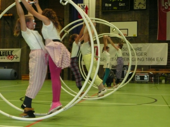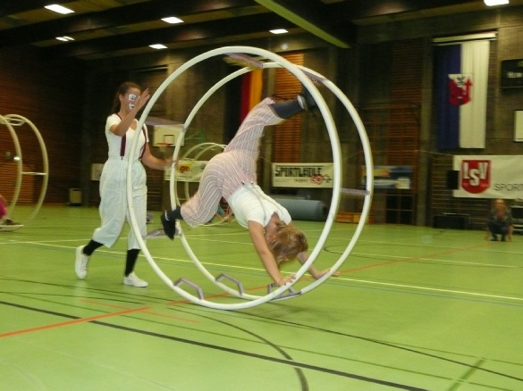 Die LSV stellte die Vielseitigkeit unter Beweis. Die Zehn Abteilungen gaben Einblicke in das abwechslungsreiche Angebot. Die Rhönradturnerinnen präsentierten sich dieses Mal als Clowns.