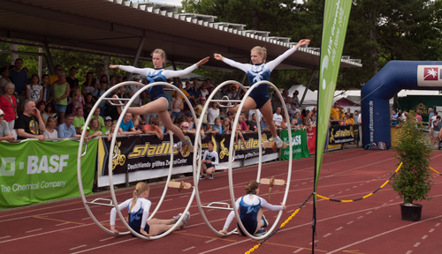 Auch dieses Jahr waren die Rhönradturnerinnen des LSV Ladenburgs beim internationalen Deutschen Turnfest in Berlin wieder am Start. Trotz der mehrstündigen Verspätung des Sonderexpresses, gestaltete sich die doch sehr lange Fahrt als gute Einstimmung auf die bevorstehende Woche. Schon am ersten Abend startete das Wochenprogramm mit einer hervorragenden Eröffnungsfeier. Neben vielen Mitmachangeboten auf dem Messegelände, wie zum Beispiel Fechten, Kämpfen, Rasencurling oder Bouldern, besuchten die vier Rhönradturnerinnen Odile Bernd, Gina Wimmer, Fabiana Trapp und Ina Kühlwein einige Vorführungen, Showwettkämpfe und Konzerte. Die Turnfestgala und der Länderabend waren wir zu erwarten große Highlights. Sie selbst nahmen erfolgreich an einem Rhönradwettkampf in den Altersklassen U15, U17 und U18