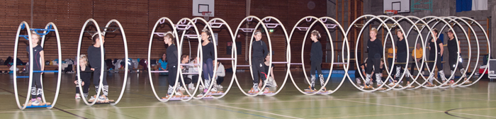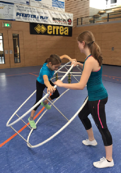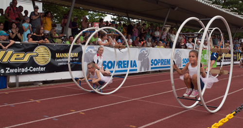 Vom 14.-16.7.17 fand in Konstanz das Landeskinderturnfest statt. Die Rhönradgruppe der LSV nahm erstmalig daran teil. Nach langer Anreise bezogen Mira, Eva, Lea, Sofia, Philine und ihre Trainerinnen Jannine und Sandra ihr Quartier. Die Teilnehmer von 6-14 Jahren aus vielen badischen Vereinen schliefen mit Luftmatratze und Schlafsack in den Konstanzer Schulen. Dann ging es gleich weiter zur Eröffnungsfeier, als pünktlich zur Begrüßung ein Regenbogen am Himmel erstrahlte. Bei der anschließenden Party wurde getanzt und mitgesungen.