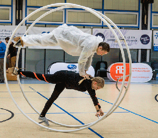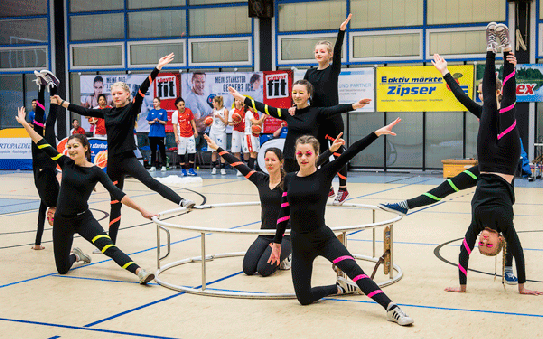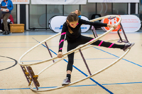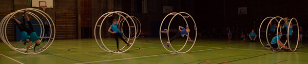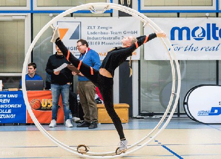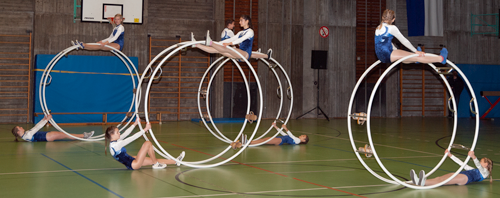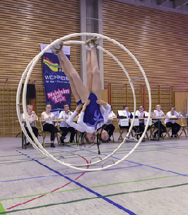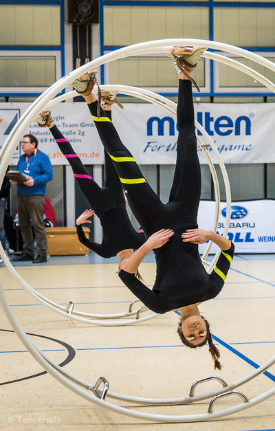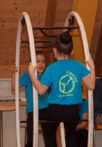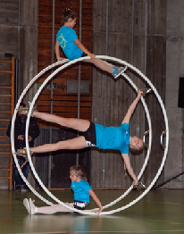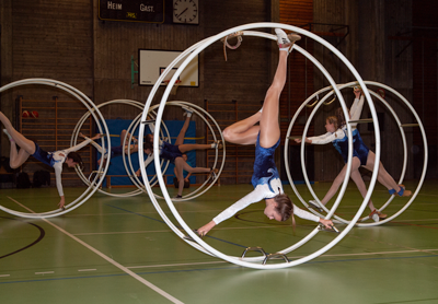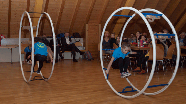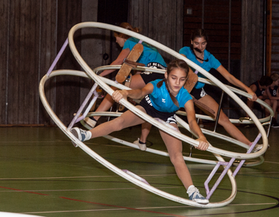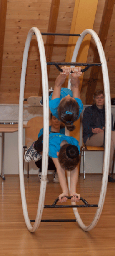 Einblicke ins Rhönradtraining: Turnern und Turnerinnen zwischen 4 und 19 Jahren aus beiden Gruppen präsentierten Vorübungen, Grundlagen und Elemente aus dem Geradeturnen, Partnerturnen und Spirale